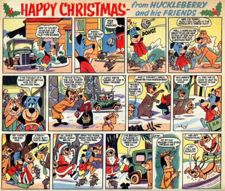 It’s ceaselessly amazing that people around the world not only read this blog, but some link to it. One of those readers is in Scotland and his link is at KID ROBSON’S SITE. He’s posted a neat Christmas colour comic from 1960 that was part of TV Express Weekly. It features all the regular characters from the Huck show of the day.