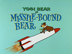 There must have been nigh half dozen "Missile bound..." Hanna-Barbera cartoon titles....a season 3 "Pixie and Dixie" ("Huckleberry Hound" show, 1960-1961, one of the last to use stock music before Hoyt Curtin's replaced it) that was a remake of Season 1's Zorro parody (which really wasn't much of one) "Mark of the Mouse" with a much more better idea for an avenger-----Season 3's "Missile Bound Cat", replacing the French mouse of the earlier with a space Cat, was the first "Missile Bound" cartoon at HB, "Missile Bound Cat".